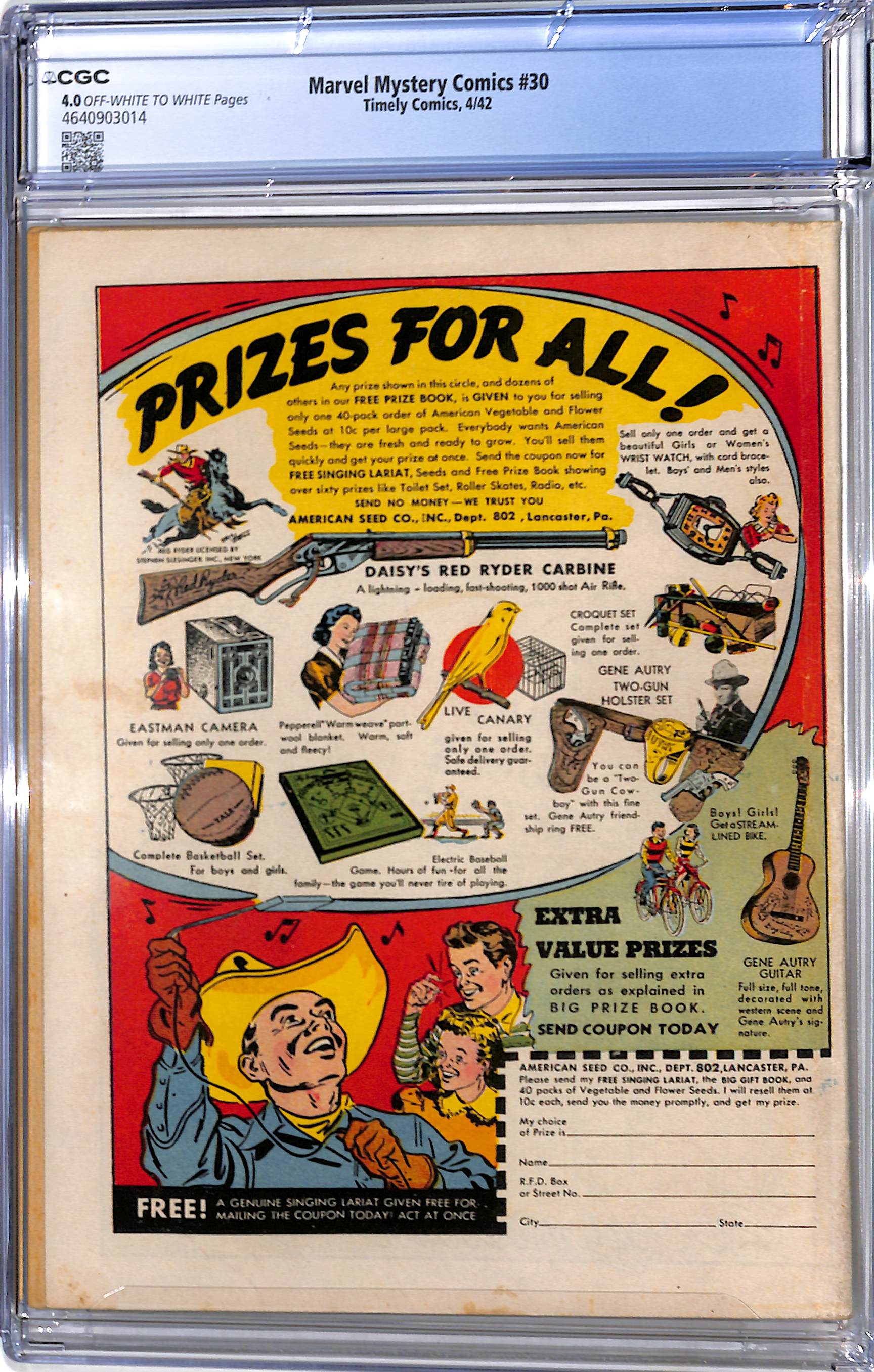 Marvel Mystery Comics # 30 CGC 4.0