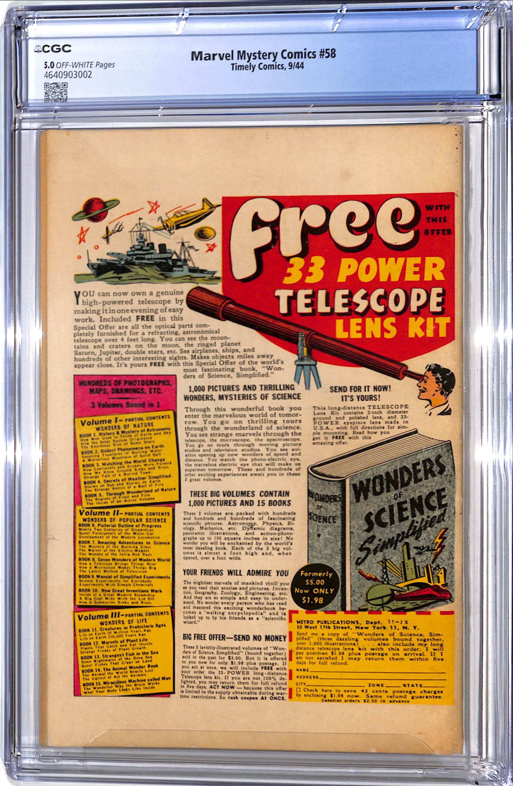 Marvel Mystery Comics # 58 CGC 5.0