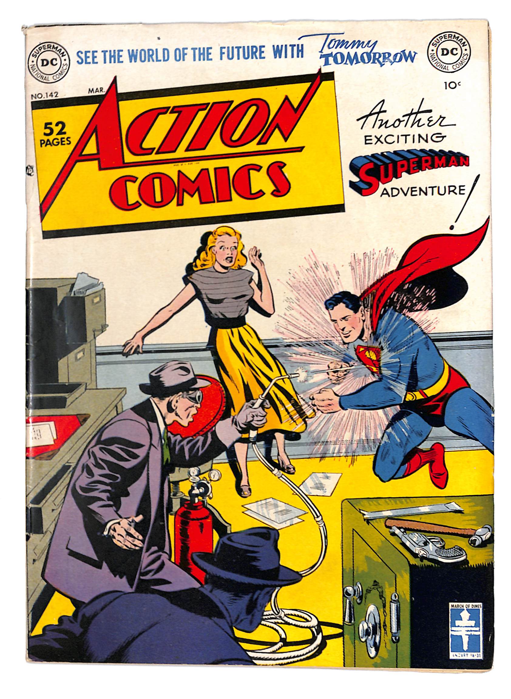 - Cover art by Wayne Boring and Stan Kaye. The Conquest of Superman, script by Alvin Schwartz, pencils by Wayne Boring, inks by Stan Kaye. Wishing World starring Tommy Tomorrow, script by Otto Binder, pencils by Curt Swan, inks by John Fischetti. Big Game in Andorra starring Congo Bill, art by Ed Smalle. The Making of a Man starring Vigilante, script by Gardner Fox, art by Dan Barry. It's Fun to be Healthy! public service announcement starring Wonder Woman, script by Jack Schiff, pencils by Irwin Hasen, inks by Irwin Hasen