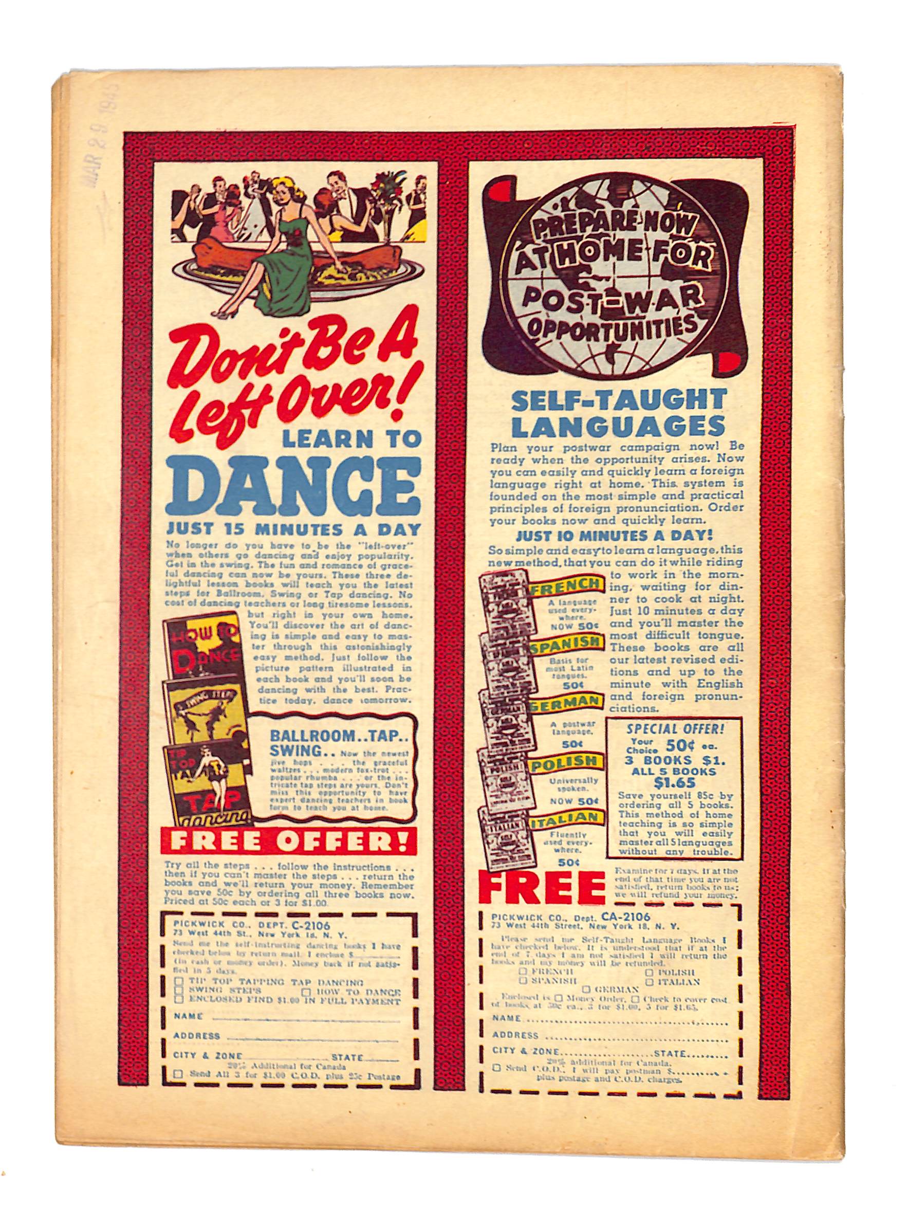 - The Man Who Could Read Features starring Boom Boom Brannigan, art by Charles Voight. Untitled stories starring Frankenstein (script and art by Dick Briefer), Zar, King of Beast (art by Robert Baldwin), Peter Pelican and Grouper. Which Witch is Which? starring Sir Prize, art by Charles Voight. The Enemy Within starring Yank and Doodle and Black Owl.