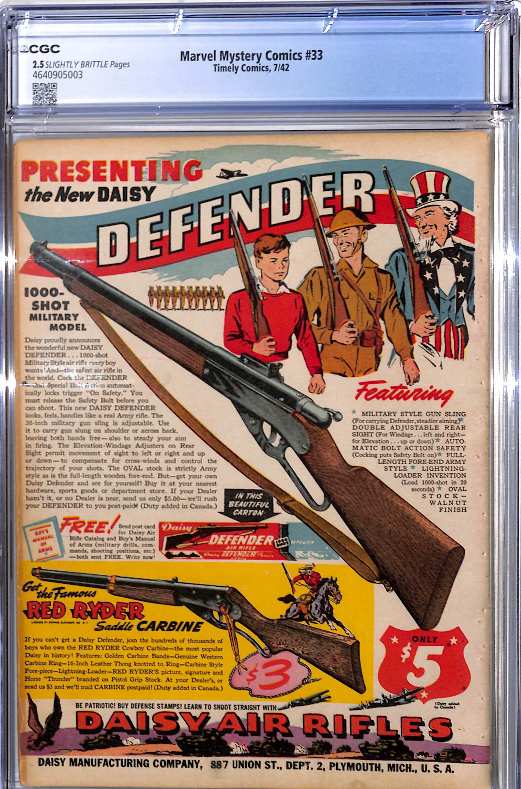 Marvel Mystery Comics # 33 CGC 2.5